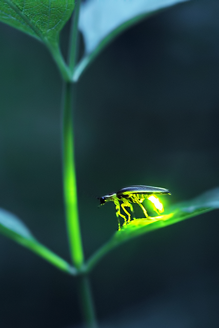 Chinese Lantern is the common name for this firefly species. I observed unique behavior when I was taking this photo. As the firefly lit up, it would pause and bend its lower abdomen almost 90 degrees down, almost touching the leaf.