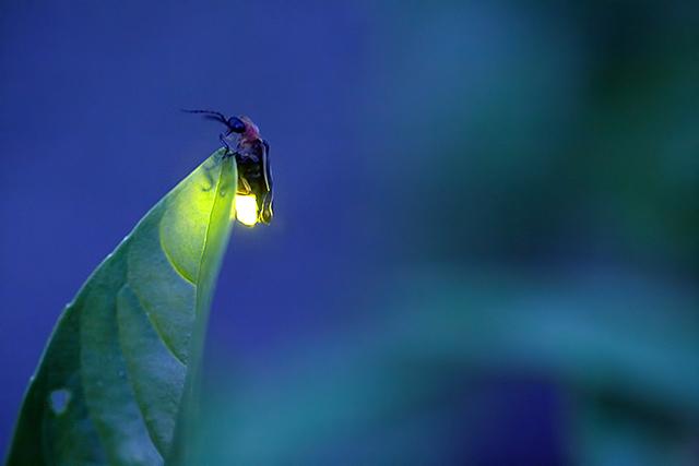 This is my first photograph of a firefly up close. When I took it, I realized that the camera technology was good enough to capture my vision. The firefly is glowing behind a basil leaf in my garden.