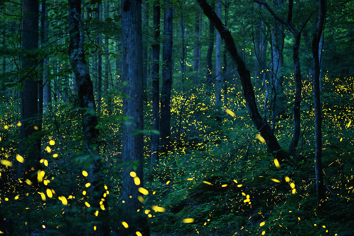 This is one of my favorite firefly photographs which I took in The Smoky Mountains National Park. It was a magical dance of Synchronous Fireflies. Synchronous fireflies in the Smokies flash in groups of six or seven flashes followed by about six seconds of darkness before repeating the pattern. It is a beautiful natural spectacle to see. This is a five minutes long multiple exposure.